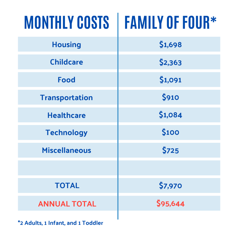 At Heart of Florida United Way, we are dedicated to advocating for ALICE households. That’s why we are committed to educating others about ALICE’s reality. The chart demonstrates the financial limitations a family of four earning $95,000 a year in Central Florida is faced with.